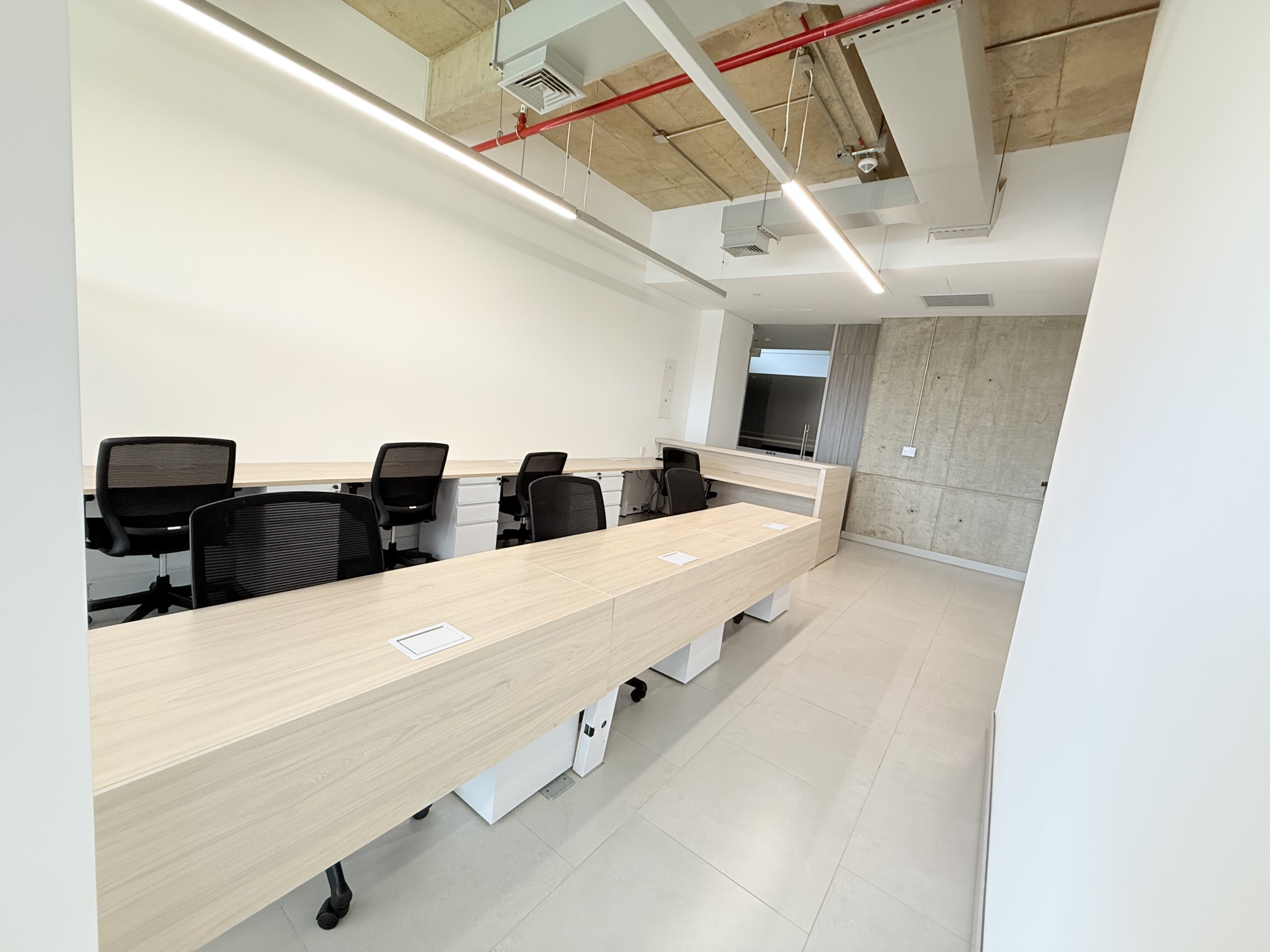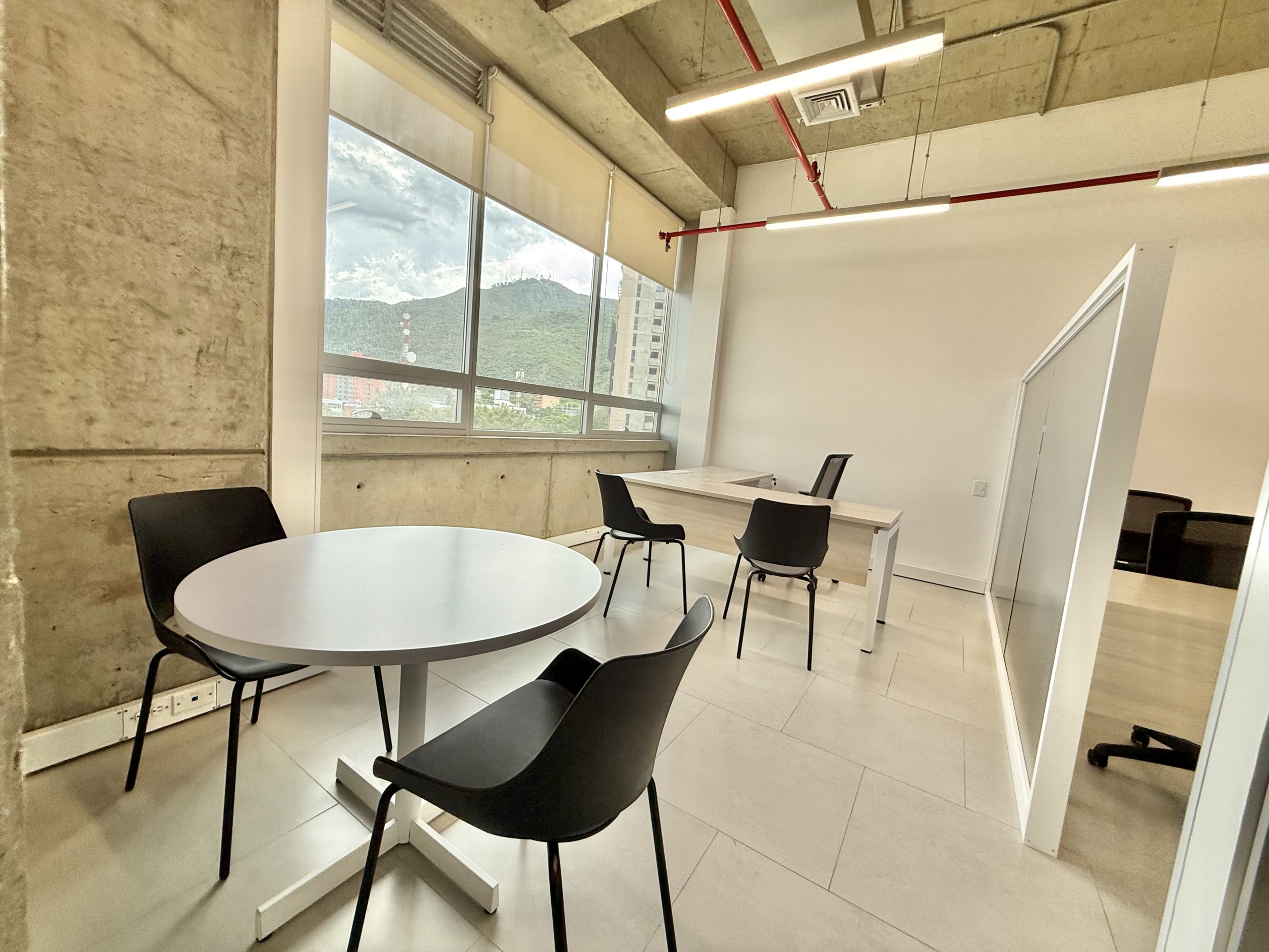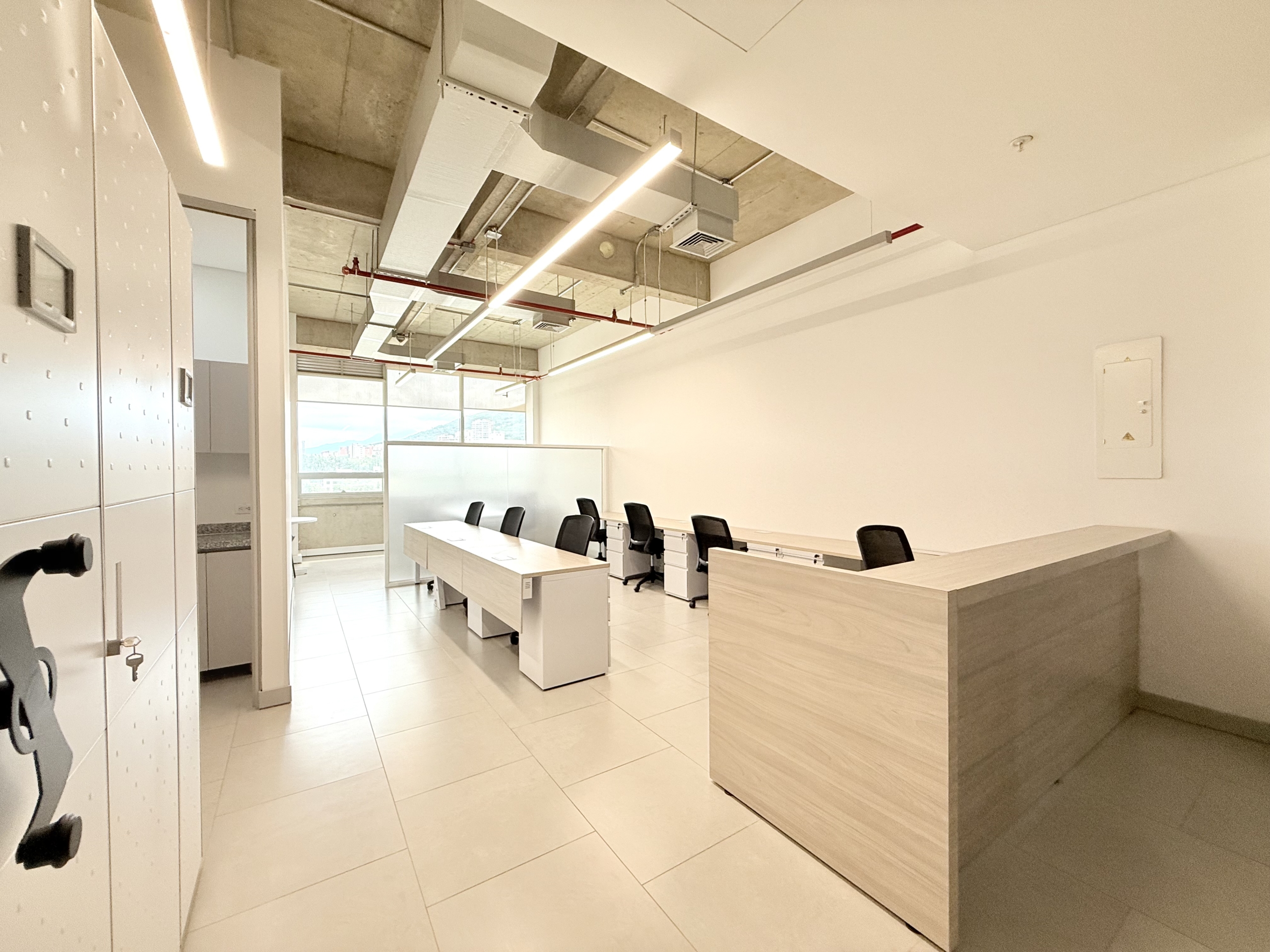 La oficina cuenta con 56 m² completamente amoblados y una distribución eficiente que incluye recepción, puestos de trabajo equipados, baño privado, cocineta funcional y archivo móvil. Dispone de aire acondicionado central, ventanería con aislamiento térmico-acústico y vista hacia los cerros de Cali, ofreciendo confort y entorno profesional.